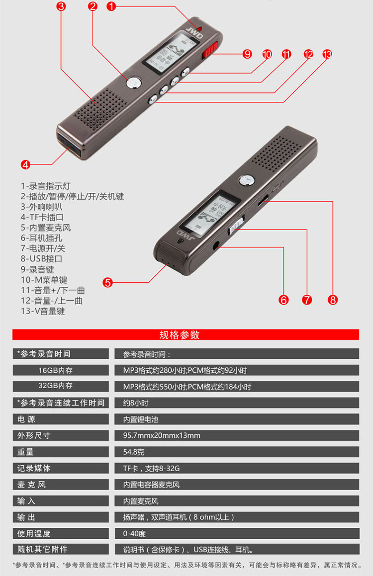 特性 32GB 遠距離降噪PCM無損錄音筆