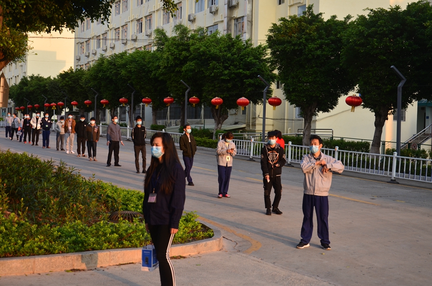 負責總部物業與員工食堂管理的京華物業公司則進行分餐制。就餐人員提前一天訂餐,由專人將盒飯送到每個辦公室。避免人員聚集就餐帶來的風險。對于剛剛從內地來廠的員工,按規定要進行14天的居住隔離。對于居住隔離的人員,公司安排專人給他們送飯送水檢測體溫,讓他們感受到了公司的關懷與溫暖。