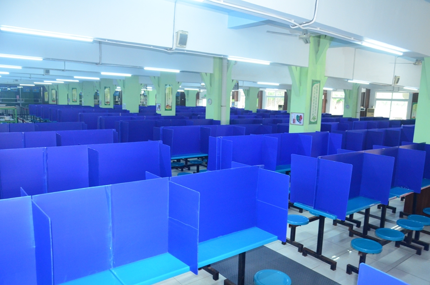 京佳物業公司后勤部在華國勝經理的帶領下,早早對京華智能科技產業園區的員工食堂作出了詳細的用餐規定:餐桌距離進行調整,規定每張餐桌只能坐一名員工就餐。餐桌上醒目的放著提示牌:一人一桌,不講話,不交流,快就餐,快離場。為了杜絕交叉感染的風險,食堂對餐桌用隔板進行隔離,就餐由原來的員工自助形式改為專人打飯打菜。