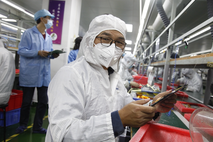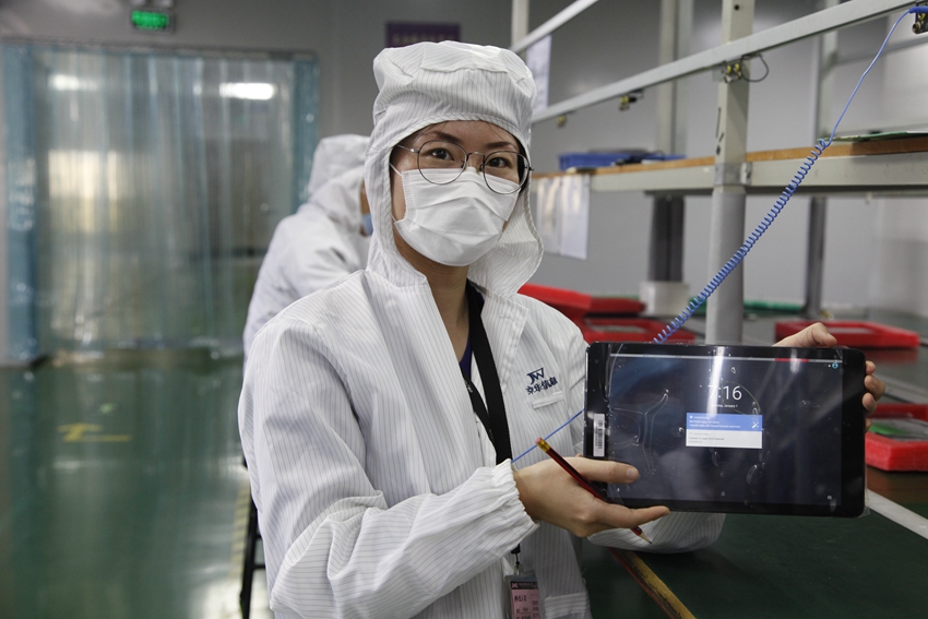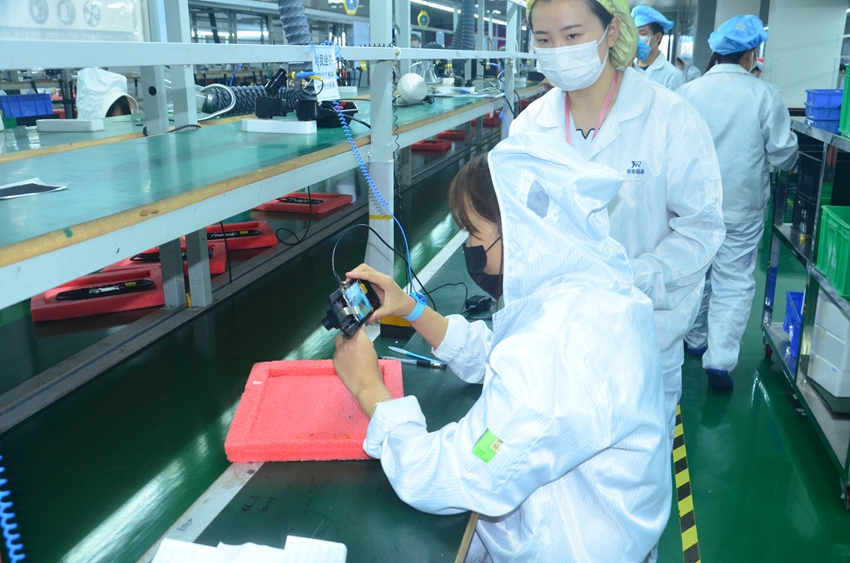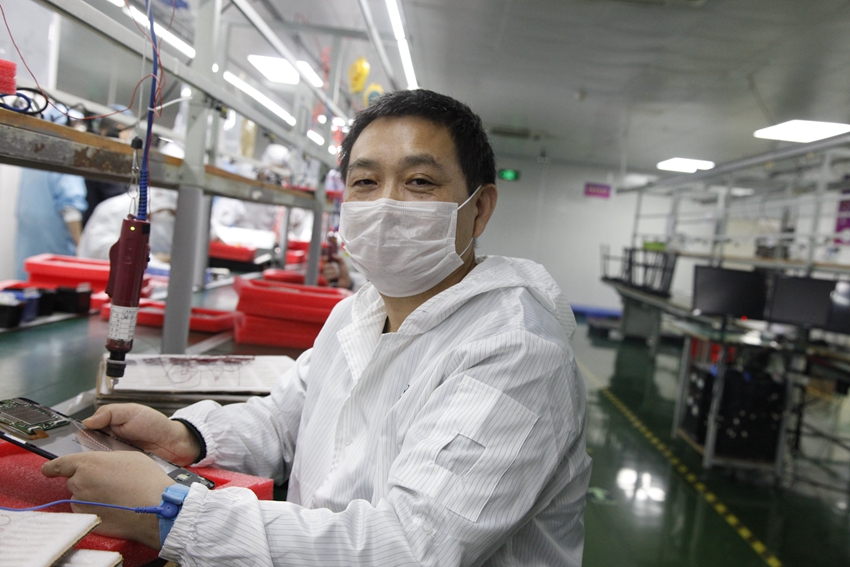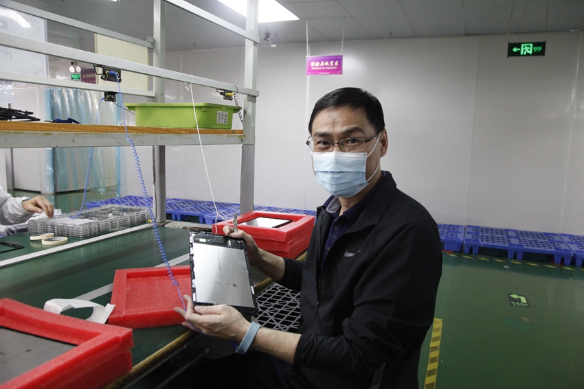 開工以來流水線人手不夠,信息公司副總經理吳虎越親自上陣