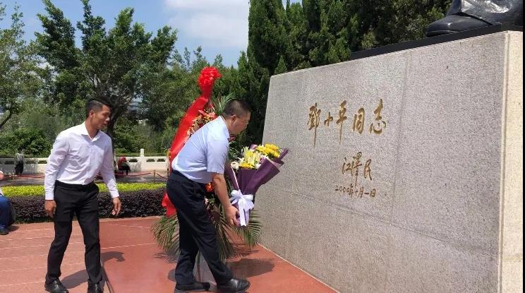 隨后,在蓮花山公園管理方及現場執勤民警同志的支持下,全體黨員共同瞻仰改革開放總設計師鄧小平銅像,表達對鄧小平同志的崇高敬意和深切緬懷。全體黨員整齊肅立,在主持人的引導下向鄧小平銅像鞠躬致敬,黨委書記、總經理王國慶同志為鄧小平銅像敬獻鮮花,并帶領大家緩步繞鄧小平銅像一周,緬懷鄧小平同志的豐功偉績。