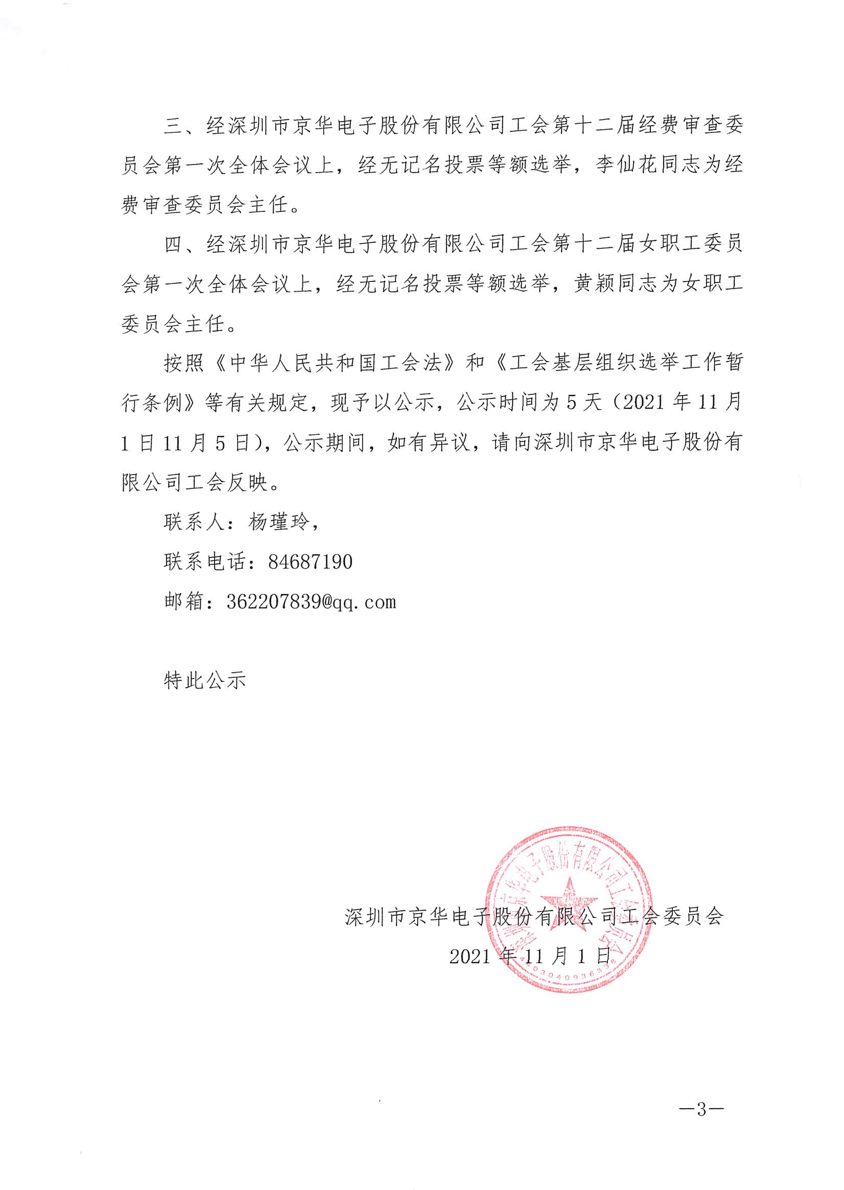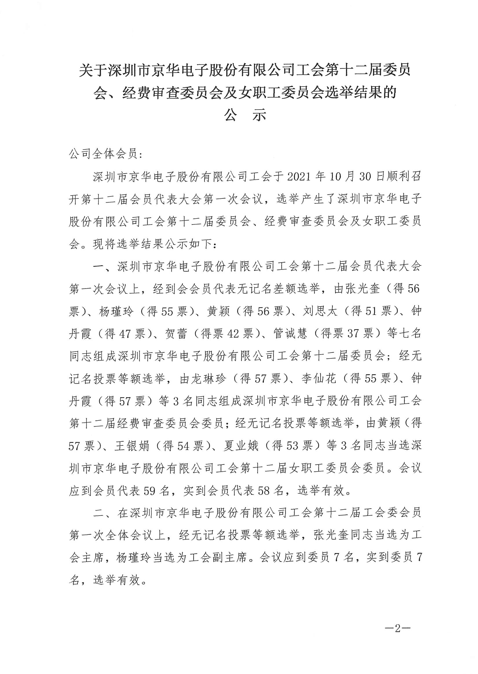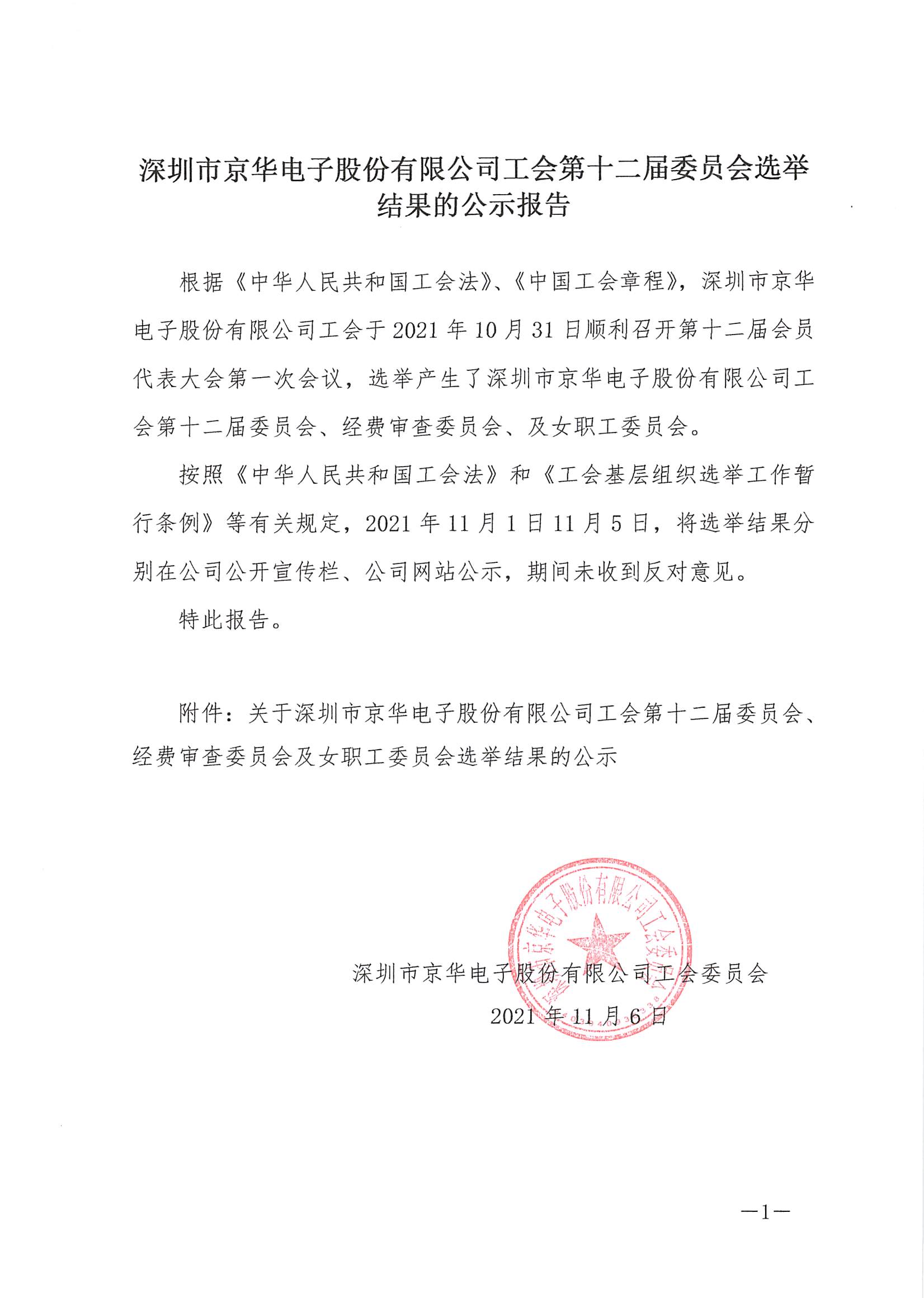 京華公司工會第十二屆委員會選舉結果的公示報告