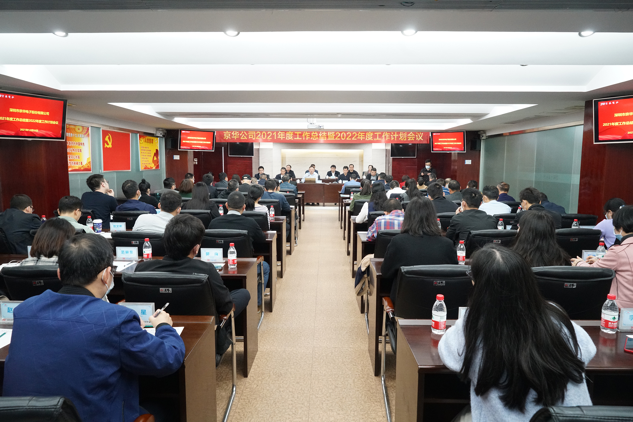 12月24日,京華公司2021年度工作總結暨2022年度工作計劃會議在總部大會議室勝利召開。黨委副書記、紀委書記羅云水主持會議,公司領導班子、黨委委員、紀委委員、黨支部書記及全體干部共80余人參加會議。