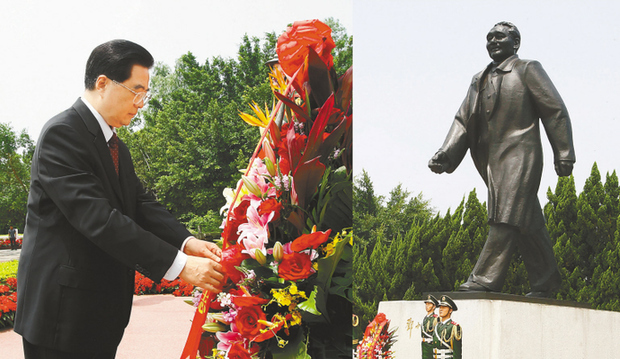 9月6日,中共中央總書記、國家主席、中央軍委主席胡錦濤在廣東深圳蓮花山公園向鄧小平同志銅像敬獻(xiàn)花籃,表達(dá)對鄧小平同志的無限敬意和懷念。 新華社記者 李學(xué)仁 攝
