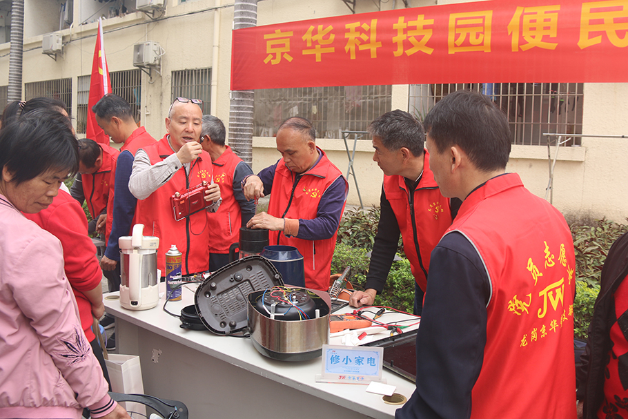 公司黨委在智能科技園區(qū)開(kāi)展“我為群眾辦實(shí)事”便民服務(wù)黨日活動(dòng),以實(shí)際行動(dòng)踐行雷鋒精神薪火相傳。在京華公司黨委書記、總經(jīng)理王國(guó)慶同志和黨委委員歐文剛同志的帶領(lǐng)下,公司黨員積極參與到活動(dòng)中,為科技園職工及其家屬提供維修小家電、測(cè)量血壓、理發(fā)、磨菜刀等暖心服務(wù),讓學(xué)雷鋒活動(dòng)融入日常、化作經(jīng)常,在實(shí)踐中傳承雷鋒精神服務(wù)人民、無(wú)私奉獻(xiàn)的寶貴品格。
